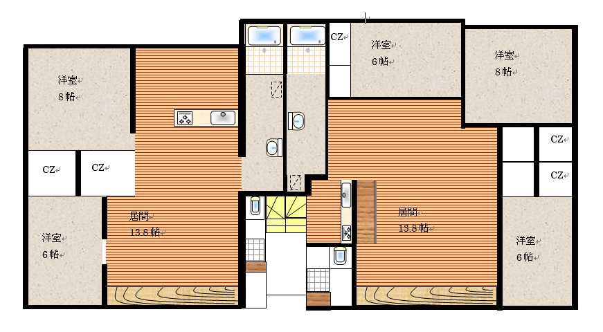 | 2LDK 間取り | 13.8+8+6 | 3LDK 間取り | 13.8+6+8+6 |